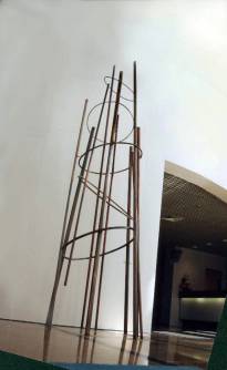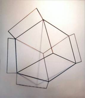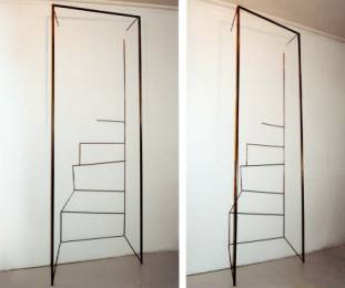 Estas obras foram criadas a partir de questões que refletem a representação em dois planos: registro gráfico através da linha e construção no espaço. Elas transitam no limite entre as modalidades desenho e escultura , considerando escultura aqui como espaço construído e não como retirada de matéria . A percepção e a relação entre corpo / espaço/ objeto me levam a estabelecer um diálogo entre o sugerido e o palpável , o presente e o ausente .