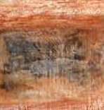 Mainly red/yellow ochre colours, with bits of writing and leaves, papers,